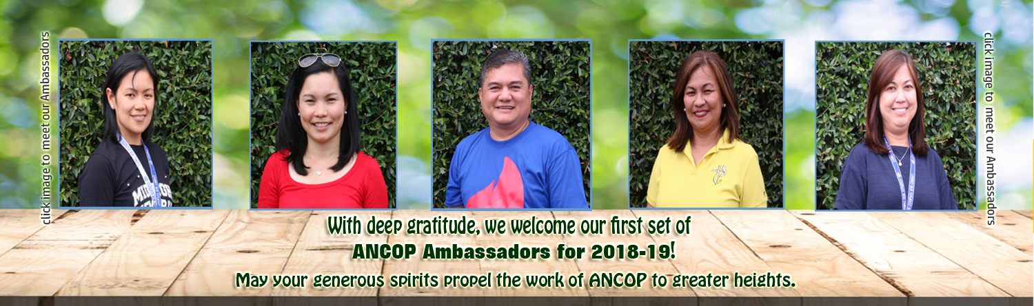 As Ambassadors for ANCOP, they spread awareness of the work of ANCOP and foster its vision of "Families in the Holy Spirit sharing God's transforming love with the poor".